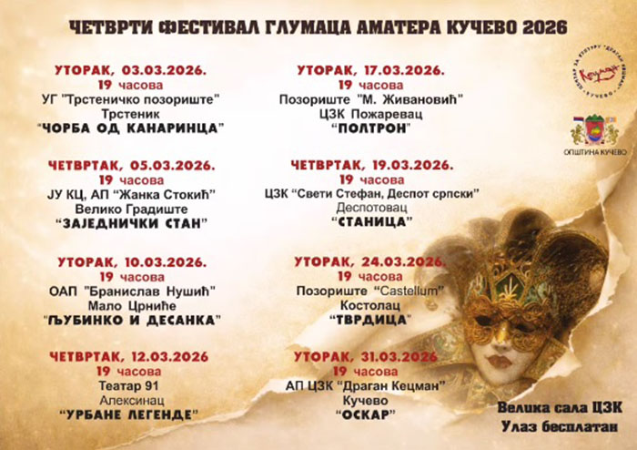 Ljubitelji pozorišta moći će da uživaju u raznovrsnom repertoaru i talentu glumaca amatera, što potvrđuje da pozorišna scena u Kučevu i dalje živi i razvija se, čuvajući važan deo lokalnog kulturnog identiteta.