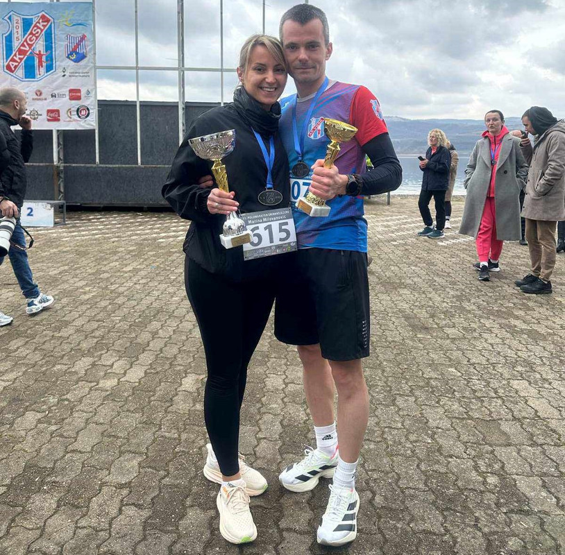 Njegova supruga Marina Milovanović, osvojila je prvo mesto u Trci zadovoljstva na pet kilometara, prolaznim vremenom od 28 minuta 19 sekundi.