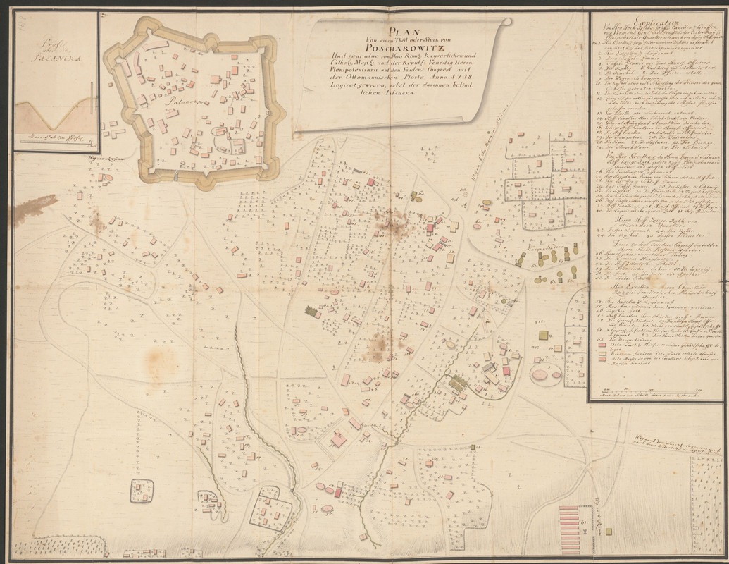 U radu časopisa „Zapisi – godišnjak Istorijskog arhiva Požarevac“, br. 12, predstavljen je i detaljno analiziran plan jednog dela Požarevca i to onog gde su bila smeštena gospoda opunomoćenici Njegovog carskog i katoličkog veličanstva i Mletačke republike na mirovnom kongresu sa Otomanskom portom 1718. godine, pored tamo nalazeće se palanke, a koji se čuva u zbirci Austrijske nacionalne biblioteke u Beču.